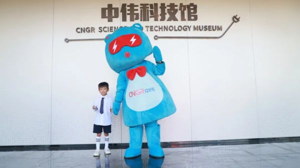 在中偉科技館門口,呆萌可愛的中偉品牌IP“鋰電寶寶”一下子吸引了小朋友們的注意力,在“鋰電寶寶”的指引下,他們懷著無比好奇的心情進入科技館,解鎖新能源材料的應用密碼。