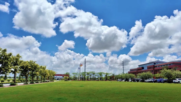 春雨連綿的3月迎來難得放晴的一天,我在園區看到這樣的畫面——中偉司旗與多國國旗在藍天白云下迎風飄揚,讓我感受到中偉國際化進程中的開放與融合。于是我拿出手機拍下這張照片,心中祝愿中偉早日成為全球領先的新能源材料科學公司。